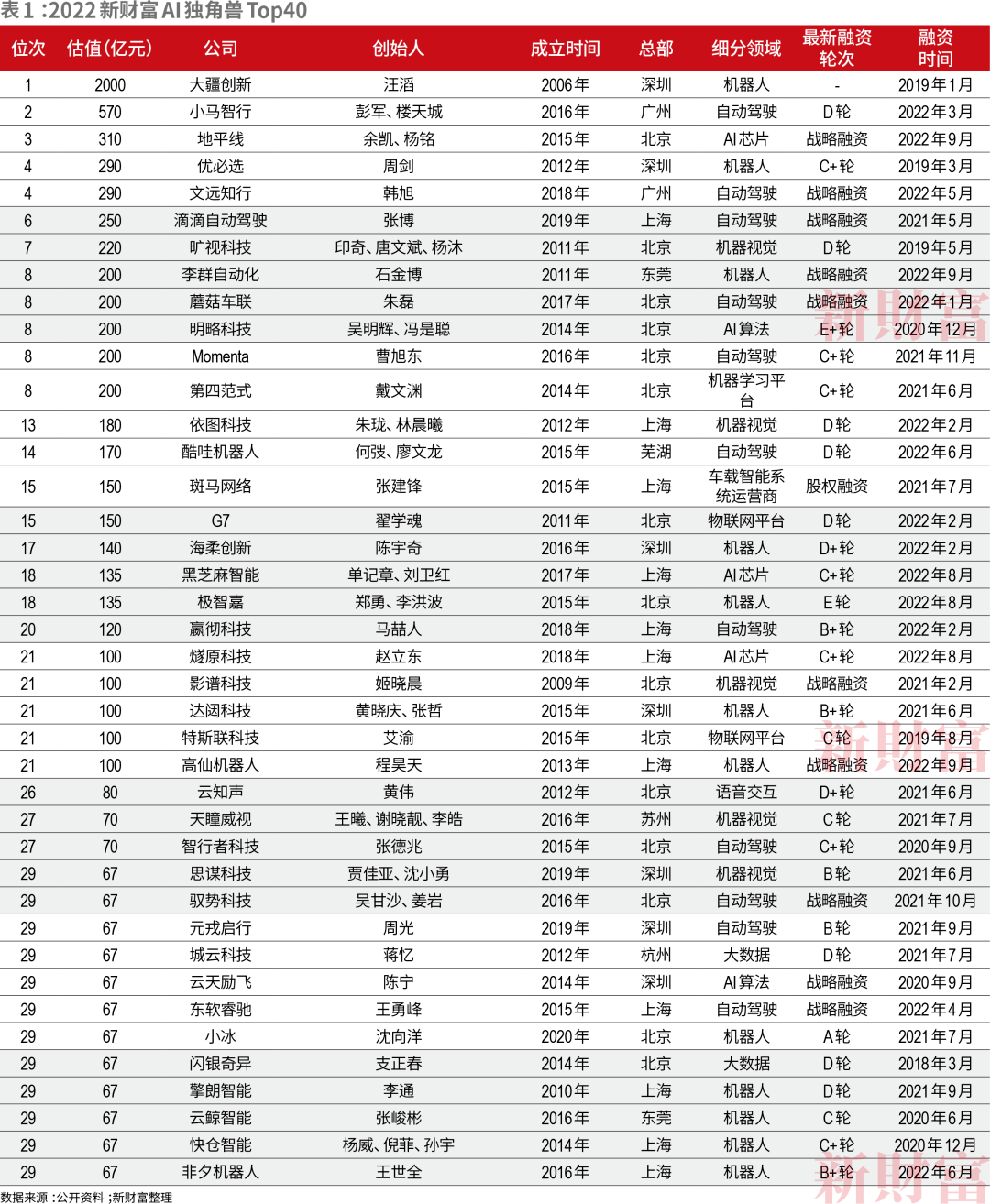 「探客出行」從《新財富雜誌》獲悉,在2022年底發佈的“2022新財富AI獨角獸TOP40”榜單中,蘑菇車聯以200億元(2022年1月)估值躋身榜單的並列第八位,距排名第六位的滴滴自動駕駛(250億元估值)僅“一步之遙”。