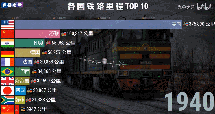 此後的印度鐵路里程逐年遞增,到了1947年獨立時,印度鐵路里程數達到了駭人的5.3萬公里,排名世界第三,1949年中國鐵路里程才2.1萬里,是當時中國的兩倍多。