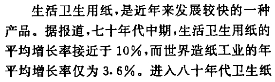 1960年代開始組織生產衞生紙,70年代中期,全世界生活用紙增長率為3%,而當時我國的增長率為10%。