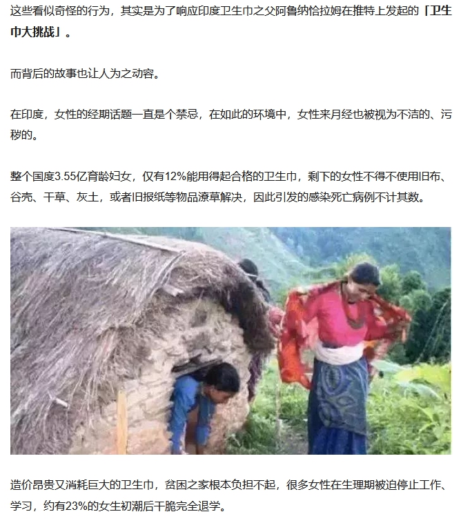 震驚!印度,一個典型的資本主義社會,從上世紀解放以後,發展到了二十一世紀,連婦女的衞生巾都要搞一個運動。