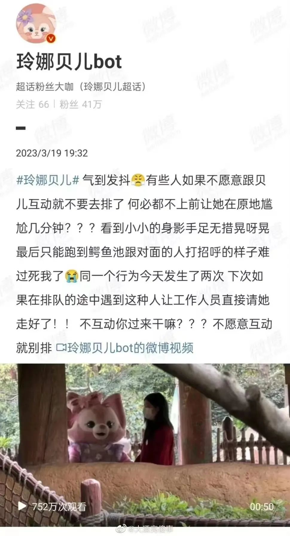 有遊客不滿意扮演玲娜貝兒的演職人員