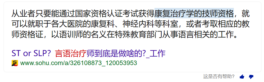以安然為例,本科康復學專業畢業後,她先後去了一家三甲醫院康復科實習,還有一家三甲醫院語言康復方向進修,才拿下了相關資格證成為語言康復治療師。