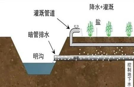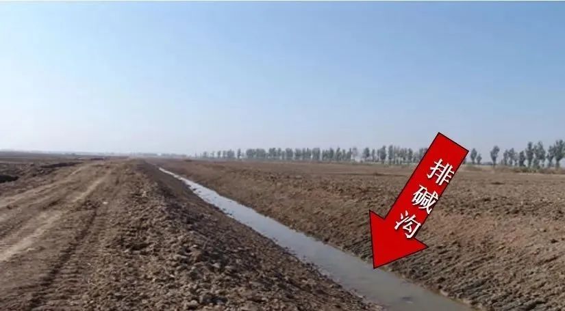 鹽隨水去:以大水淋洗方式把土壤中的鹽排走,需要挖掘排鹼溝