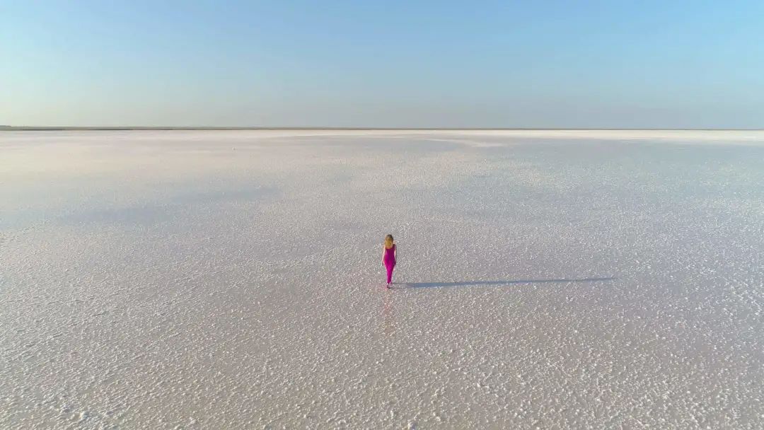 在新疆,能看到的許多如下圖這樣的景觀。很多人看到這些照片都以為是降雪。但其實這不是積雪,而是新疆的鹽鹼。