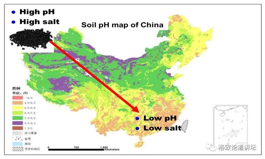 同時,現在南方紅壤的酸化問題非常嚴重,這由土壤缺鹽導致的。而鹽生植物生物炭的鹽含量可達百分之二十到百分之四十。所以我們嘗試着把鹽生植物製成生物炭,推廣到南方解決酸化紅壤問題。現在也正在用從江西運來的紅壤進行試驗,觀察研究鹽生植物是否能解決酸化土壤問題。