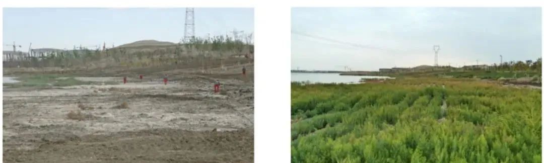 鹽鹼地綠化前(左);鹽鹼地綠化後(右)