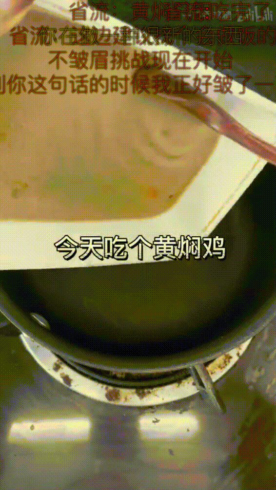 Up主@一口香雞腿在B站推出了《95後吃飯糊弄學》系列,其中的代表作“有手就會黃燜雞”,開幕就給人暴擊——第一步,先將吃剩的、已經凍成啫喱狀的雞湯倒入鍋中加熱。