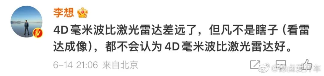 至於中國的頭部公司,為什麼一致做出了與特斯拉不同的選擇,理想CEO李想在微博給出了一部分解釋: