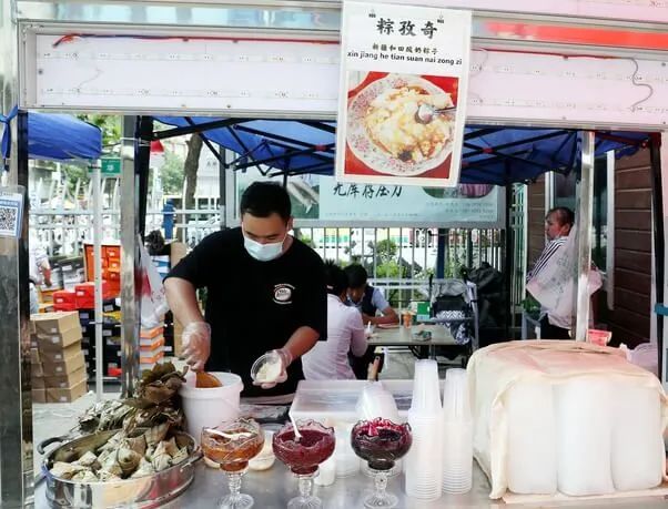 (遊客們可以吃到非常特別的東西——酸奶粽子——除了在中國西北部的XJ,人們可能永遠也不會在別處看到它。