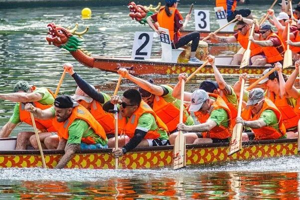 賽龍舟中划船的是西方人嗎?很高興看到他們參加團隊活動。