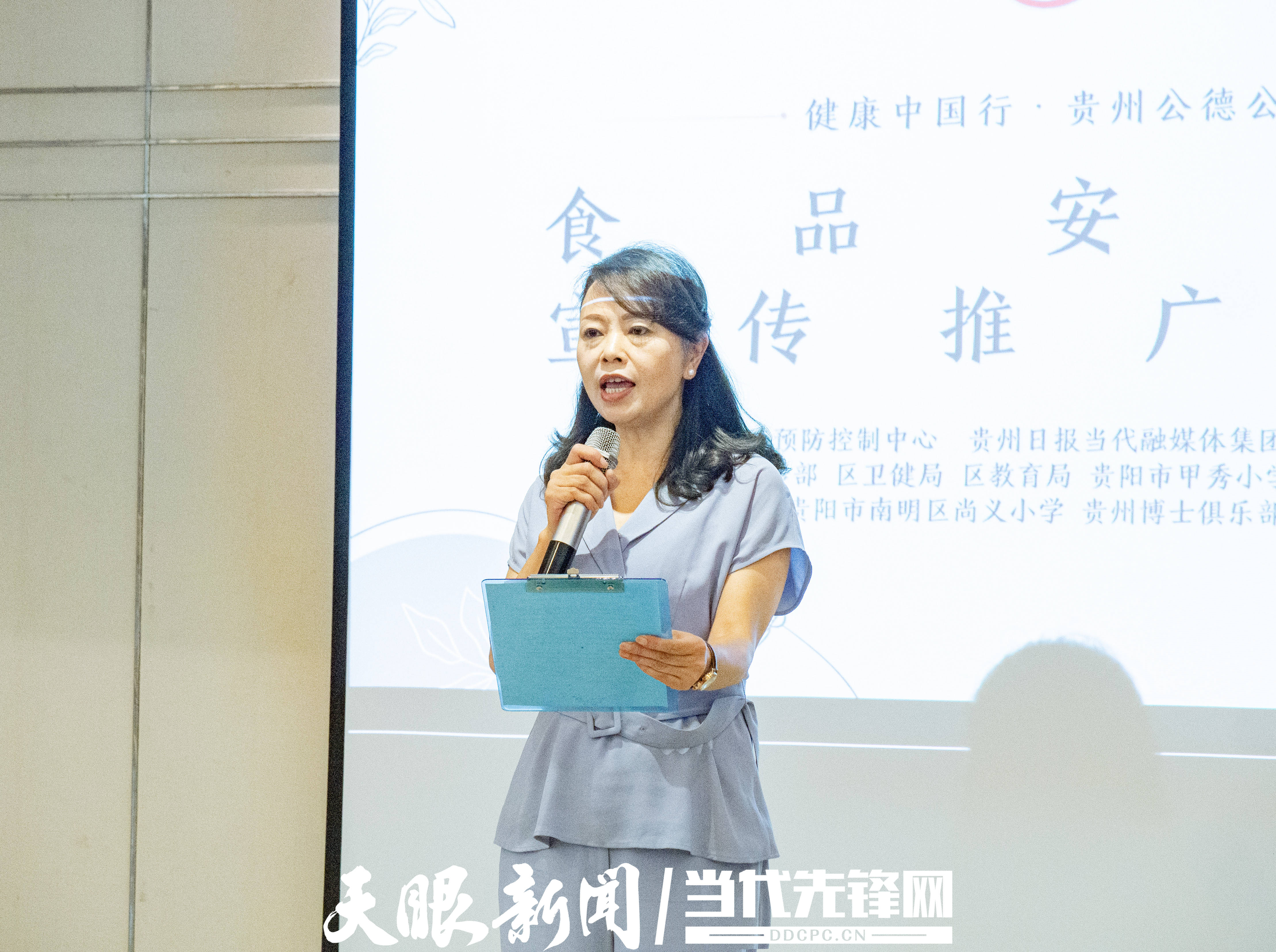 6月21日,2023年健康中國行·貴州公德公天下食品安全主題宣傳推廣活動在 貴州民族文化宮(貴州省民族博物館)舉行。貴州日報報刊社副主任周靜、省疾控中心公共衞生監測評價研究所副主任技師朱姝、 貴陽市南明區委宣傳部社宣科科長梁惠婷、南明區教育局綜合科科長任曉紅、貴陽甲秀小學校長鄧小玲、貴州博士協會科協秘書長姜鈺禾等嘉賓以及來自貴陽市甲秀小學、貴陽市南明小學、貴陽市南明區尚義小學師生、家長們近300人共同出席活動。