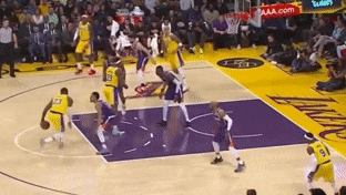 所以半場攻防時,早年勒布朗的第一選擇是上線持球找擋拆,到邁阿密後多了弱側橫切背身接球后找空切隊友,迴歸騎士後大量配置空間陣,所以弧頂啓動後,直接找三分線外隊友或內切隊友兼備;到湖人後,因為濃眉在,所以在單側45度啓動,找內切橫切隊友也多起來。
