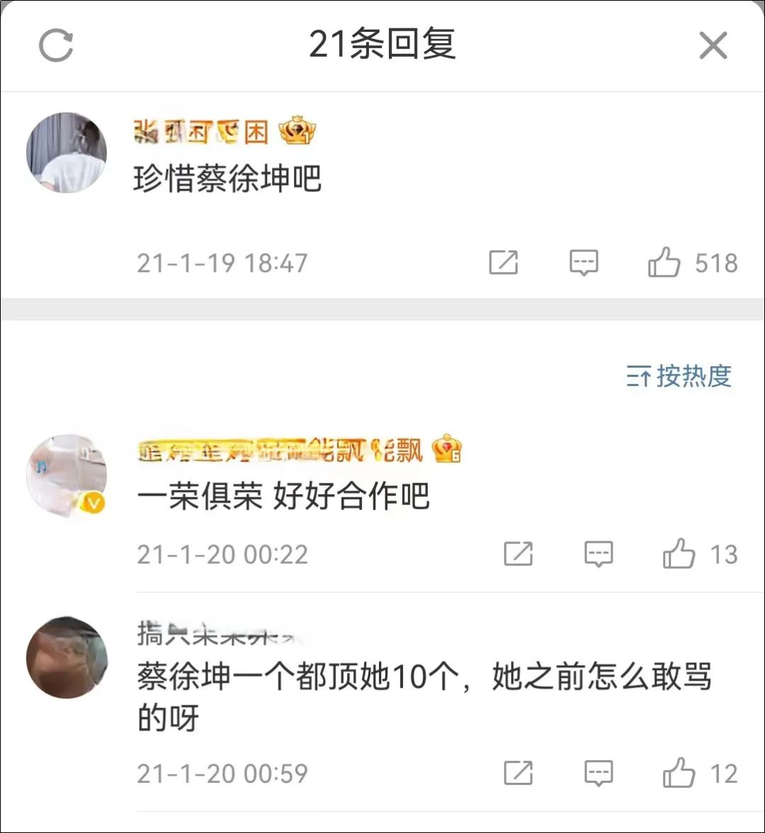 照目前的線索來看,蔡徐坤是否會塌房,不好説。