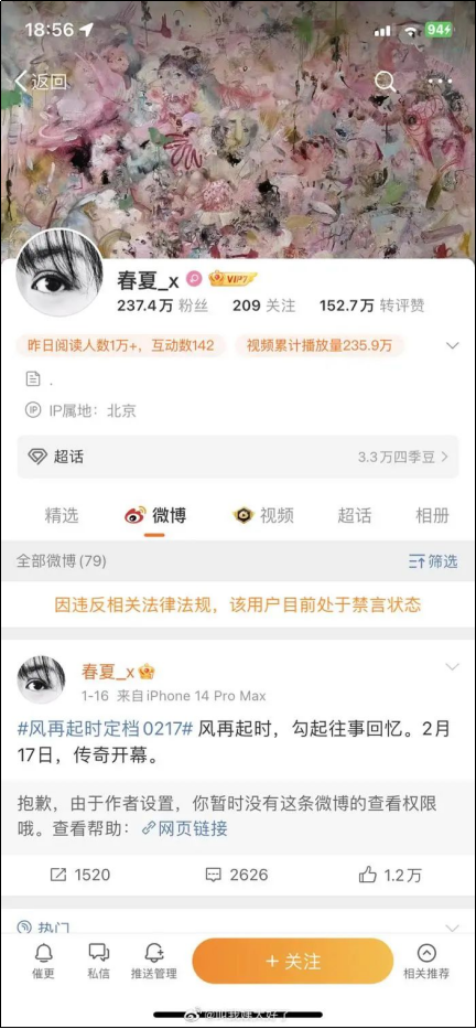 但我現在去看,她的微博沒有“處於禁言狀態”的標籤。