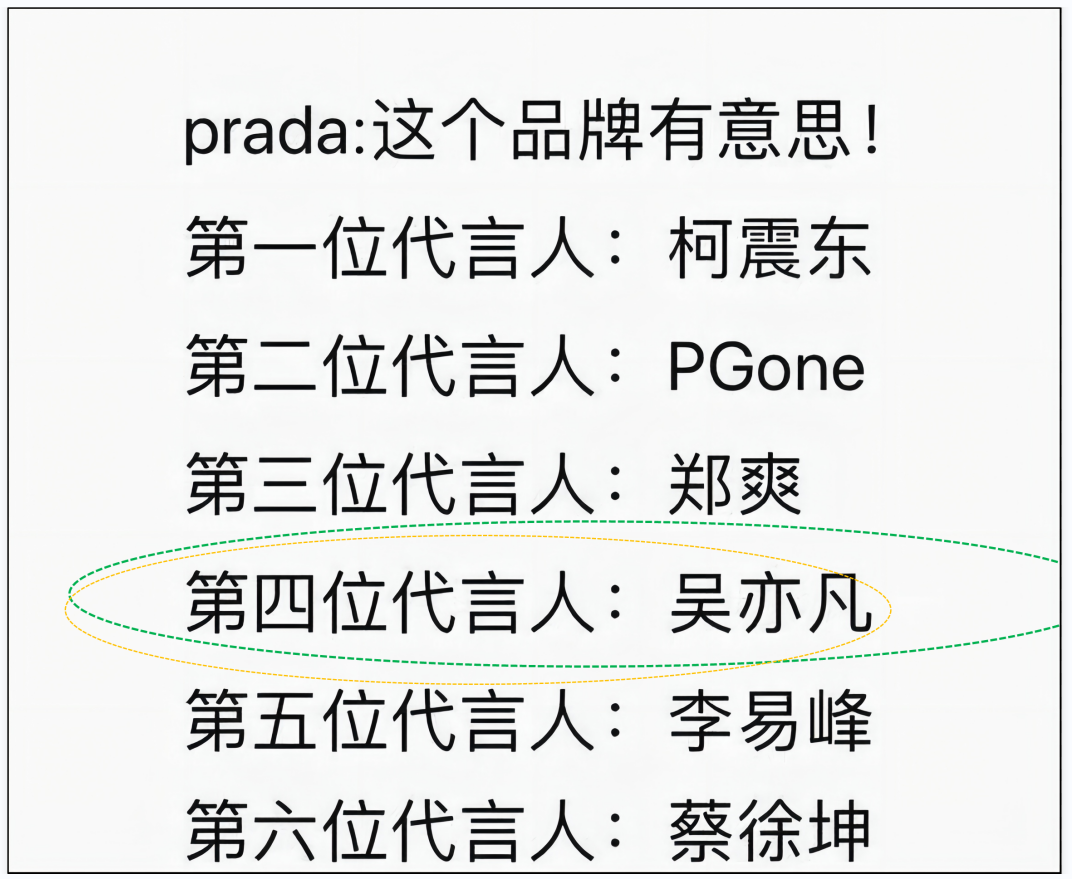 就像很多圖片裏説,吳亦凡代言過Prada,事實上沒有過。