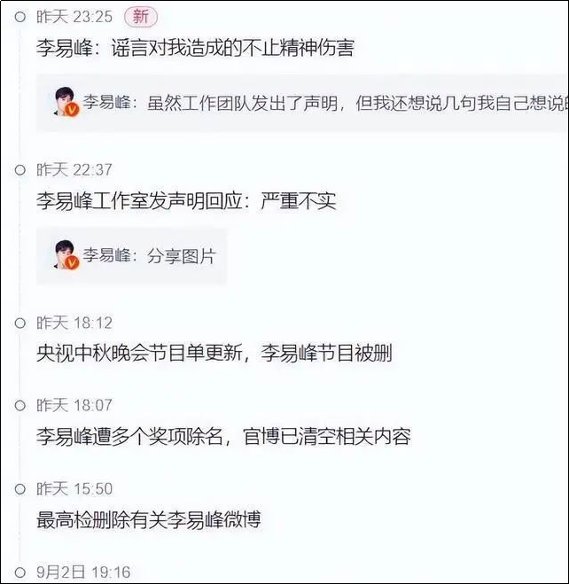 2022年9月2日,李易峯的商業活動莫名其妙被取消,接着各種傳聞出來。