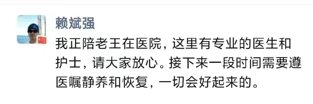我正陪老王在醫院,這裏有專業的醫生和護士,請大家放心。接下來一段時間需要遵醫囑靜養和恢復,一切會好起來的。