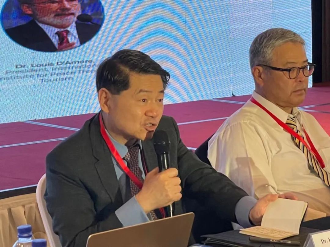 CCG理事長王輝耀在“經濟及旅遊對東北亞和平與發展作用”主題議程上發表講話,並圍繞東北亞合作及朝鮮半島和平統一等話題交流看法。參與此次會話的嘉賓還包括蒙古東北亞安全與戰略研究所所長Nanjin Dorjsuren;東北亞環境與農業研究中心創始人兼執行主任khagvasuren Lkhagvaa;北方經濟合作委員會前主席Chong-soo Park等。全球和平基金會經濟與政府關係高級顧問、世界貿易伙伴關係主席John Hancock Dickson 主持本次會話。