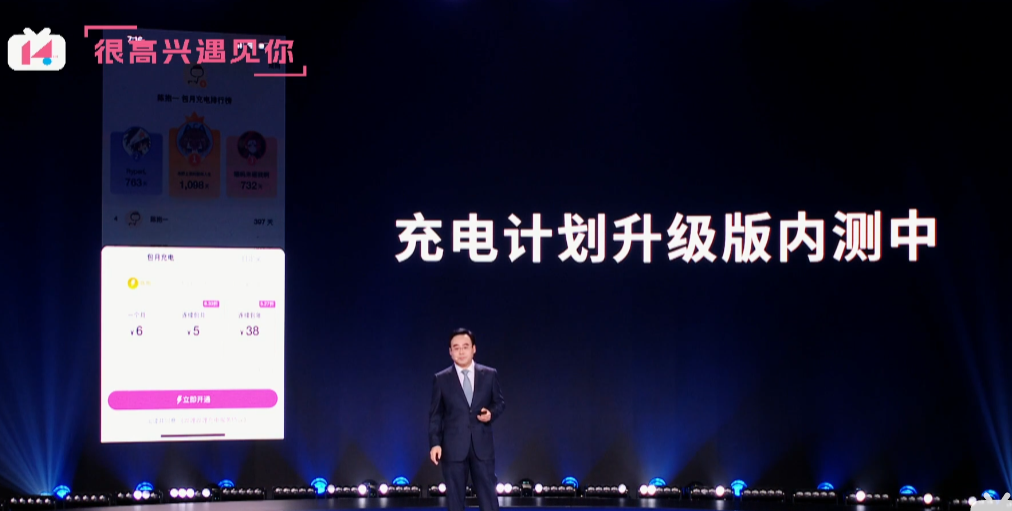 另外在 UP 主的商業化方面,叔叔先是曬了一波直播數據,還有 UP 主商業合作平台花火的成績後,就突然轉到了類似於訂閲制的包月充電計劃。。。
