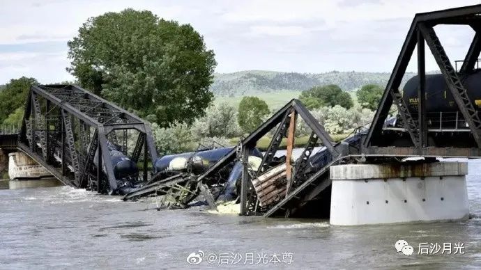 當地時間6月24日,美國蒙大拿州黃石河上一座鐵路橋倒塌,一列貨運列車掉入河中。