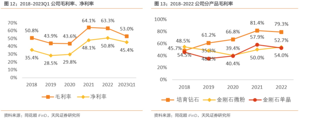 這一點可以從逐年上升的毛利潤中看出。2018年,力量鑽石的培育鑽石業務毛利率僅為45.7%,低於行業平均水平,而2022年,這一數值已經來到了80%左右。