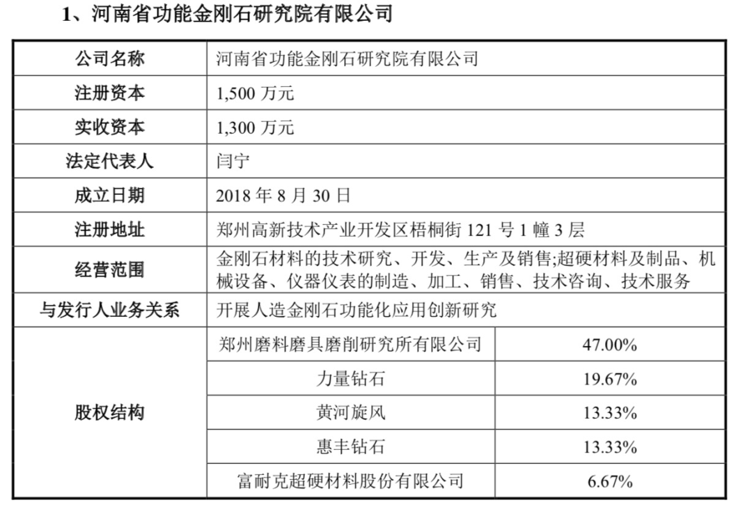 鄭州三磨所是國內最主要的人造金剛石合成設備——六面頂壓機的核心供應商,而力量鑽石與鄭州三磨所等企業合資成立了河南省功能金剛石研究院有限公司,可見兩者關係非同一般。