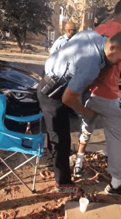 在路邊裏德姑媽等至少6個人的見證下,45歲的黑叔裏德的尊嚴隨着褲子一起被警方脱掉。