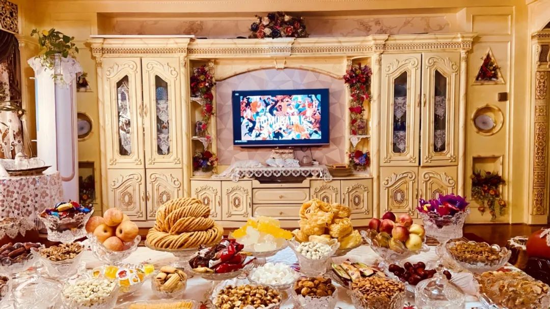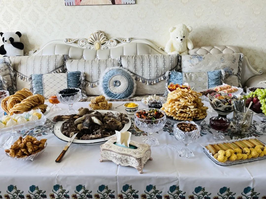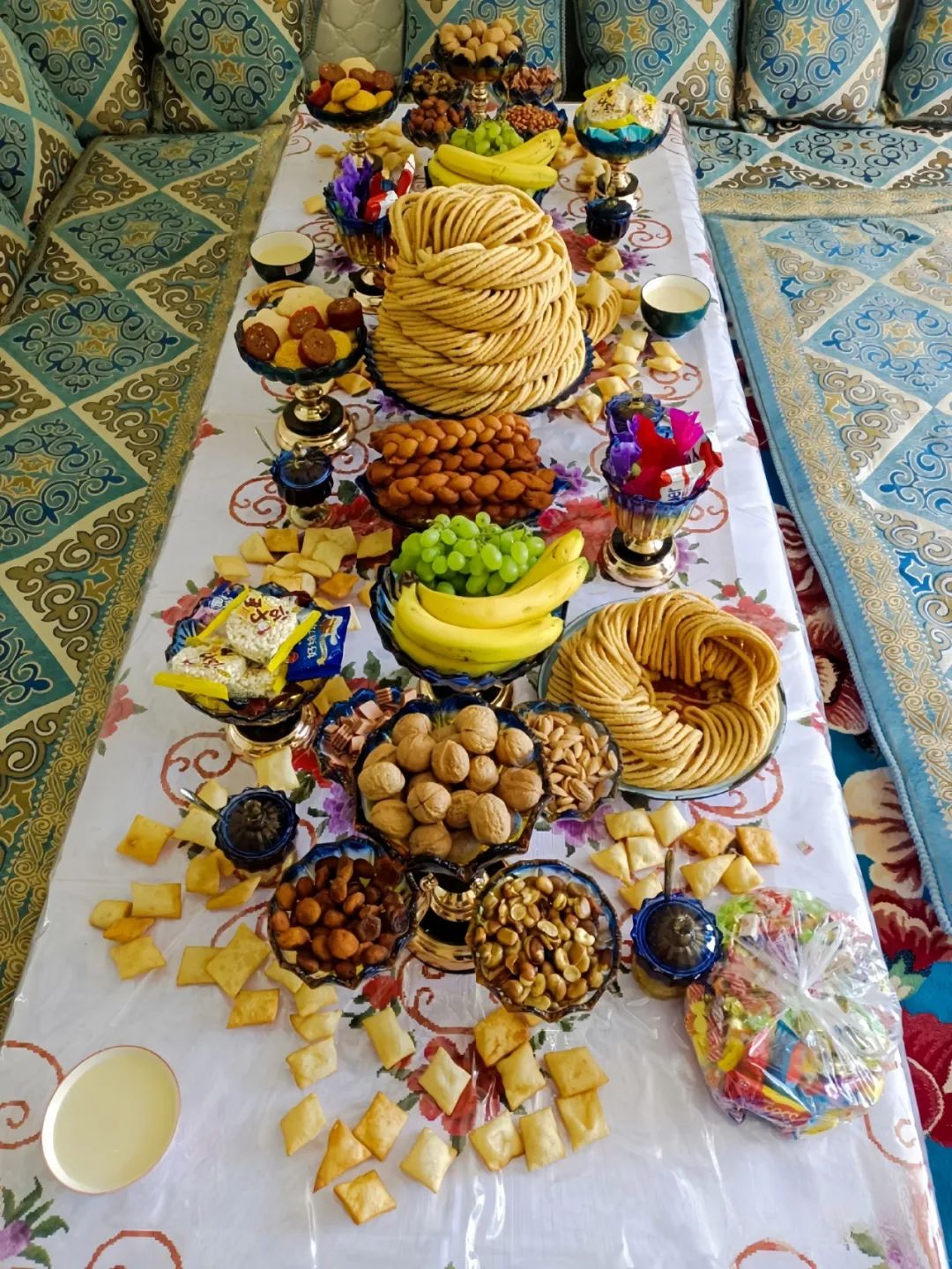 媽媽早就準備好了過節的食材,除了擺置的蜜餞、乾果和小零食外,還親手和麪炸了新鮮的饊子和包爾薩克,爸爸負責購買要宰牲的羊。