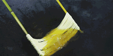 在麪粉與白糖的纏綿下,造就了新疆人熟知的糖霜江面條。用熬製的麥芽糖稀給炸好的江面條掛霜,還沒出鍋就讓人“口水直下三千尺”,鬆軟甜糯、一口一個。