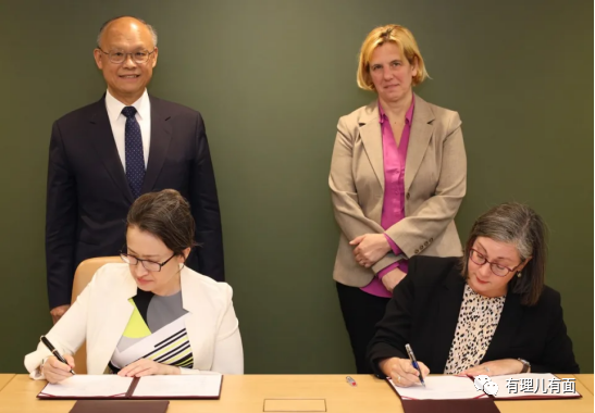 圖:台灣駐美代表蕭美琴與AIT執行理事藍鶯於6月1日在華盛頓簽署“美台21世紀貿易倡議”首批協定