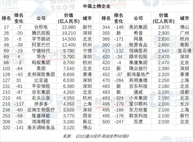 去年12月,胡潤研究院發佈了《2022胡潤世界500強》,按照市值或估值為世界範圍內的企業(非國有)進行排名。這個榜單最為外界關注的一個變化就是,抖音的運營主體字節跳動排名首次超越阿里,成為了中國上榜企業的第三名。排在字節跳動前面的,一個是騰訊,另一個是台積電。