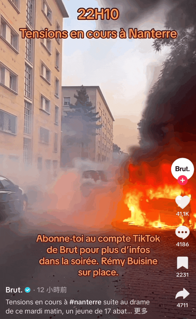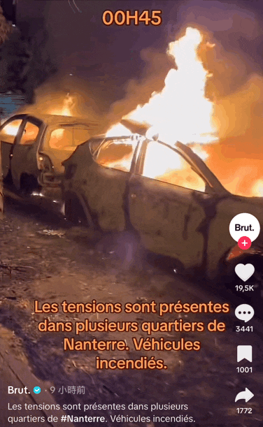 昨晚巴黎驚魂夜:燒車,放火,暴亂...因17歲少年被警察射殺!_風聞