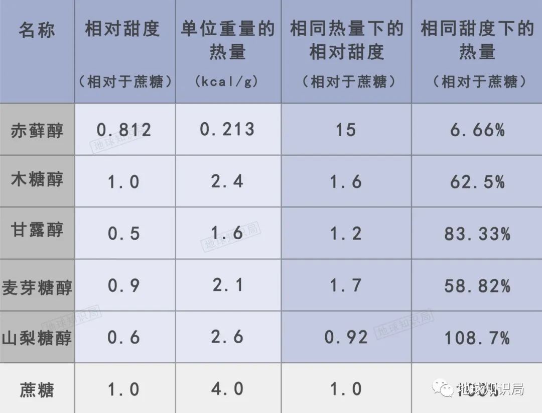 但是,糖醇類在熱量上的表現是有區別的,如赤蘚糖醇被認為是0kcal/g,木糖醇為2.5~3kcal/g(蔗糖一般為4kcal/g),算是一種低熱量的甜味劑。