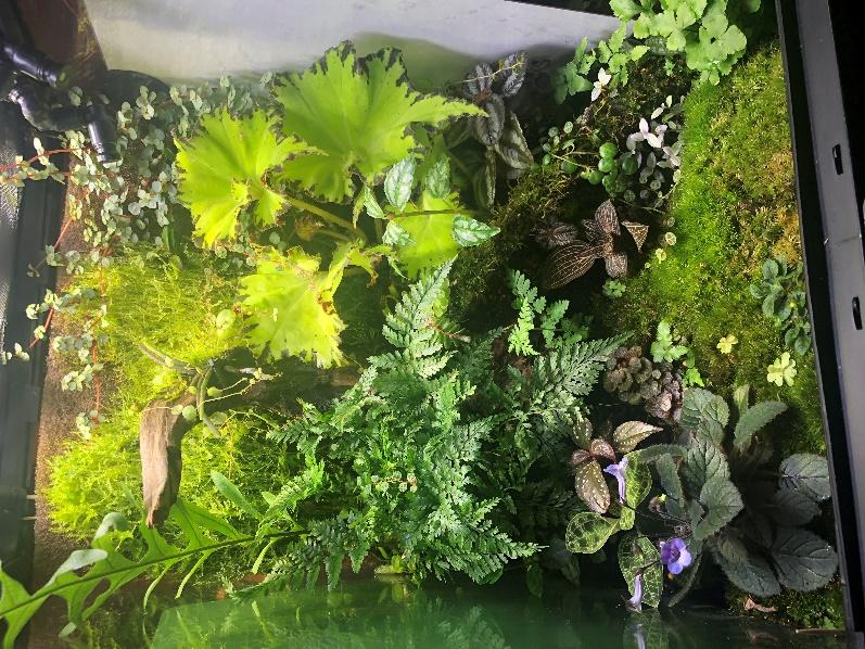 在這些藤蔓植物前方,缸體靠後的位置可以選擇種植一些秋海棠和蕨類,它們通常葉片較大,比較適合後方景觀,讓你的缸體看起來透視性良好,在還原雨林景觀的同時也具有一定觀賞性。