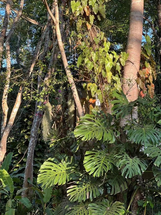 在熱帶雨林中,樹木佔領了大部分空間,寬闊的樹冠遮蔽陽光,導致地表幾乎沒有陽光照射。於是很多植物都更改了生存策略,從地表挪到了空中——也就是樹幹上。在雨林的大樹上,我們經常能見到很多附生在樹幹上的植物,如龜背竹、石斛、蘭花、蕨類。