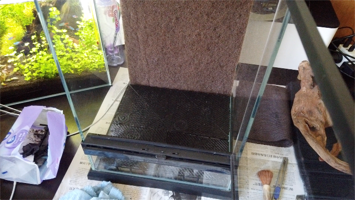 首先是底部土壤的鋪設,在鋪土之前,需要先放好我們準備的過濾網格,將這些網格按照缸底大小進行剪裁,並將它們放在底部,這樣能夠保證之後積水不會存在土壤裏,泡壞植物根系。隨後是將過濾棉剪到合適的大小,鋪設在過濾網格上,然後就可以開始鋪設土壤了。
