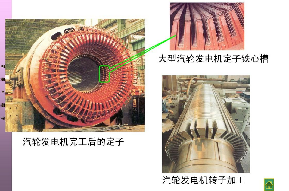 大型發電機機座採用八軸數控機座加工中心完成;轉子加工採用重型數控車牀加工外圓,專用轉子槽銑牀加工半封閉型線槽;定子鐵心衝片製造採用高精度衝牀和模具衝制;定子線棒主絕緣採用少膠粉雲母帶繞包,用真空壓力浸潰無溶劑漆,保證線棒質量;定子鐵壓裝採用1000t單頭油壓機分段加壓,感應加熱熱壓,並採用遠紅外熱點攝像儀快速準確地測定定子鐵心過熱點。