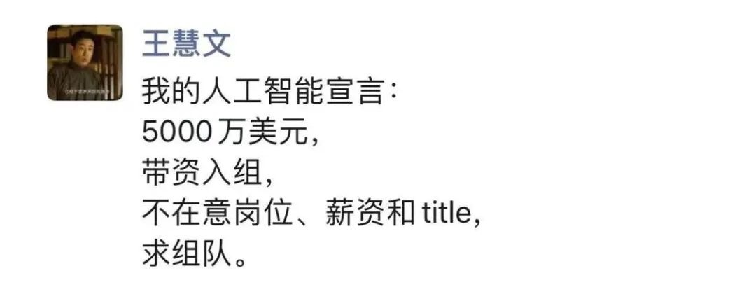 今年 2 月,從美團退休兩年多的王慧文發朋友圈稱要打造「中國的 OpenAI」,出資 5000 萬美元成立 AI 公司光年之外,併發布「英雄帖」,招募 AI 人才。一時之間,一呼百應。智源研究院副院長劉江、“搜狗輸入法之父”馬佔凱先後加入,美團創始人王興、快手創始人宿華也均以個人身份投資光年之外,騰訊也被曝在投資方之列。