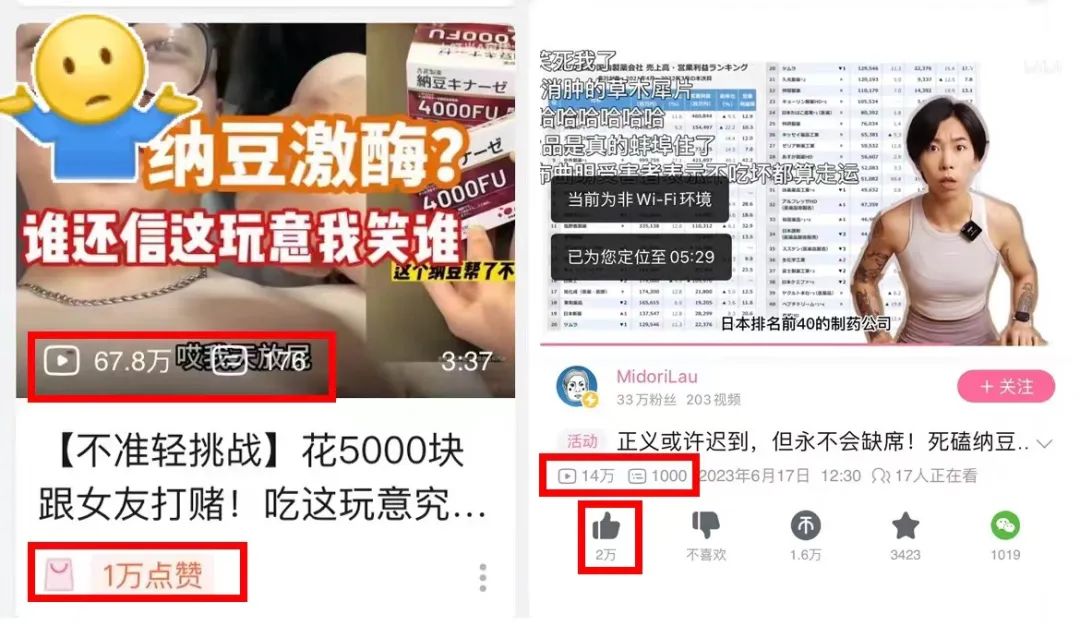 而真正揭露納豆激酶智商税的up,比如那位死磕納豆激酶的MidoriLau,視頻播放量只有14萬,但有1600多條評論,兩萬點贊。