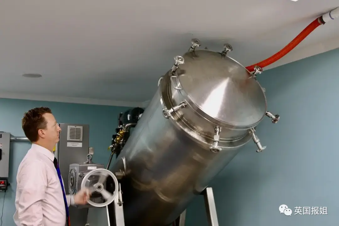 第五步:罐子裏大約330加侖的液體先會被排到另外的容器中冷卻,之後這些液體會從下水道沖走,進入英國正常的水循環系統;
