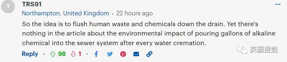 事實上,這次英國向民眾科普了水葬後,不少民眾都表示不能接受這種遺體處理方法。