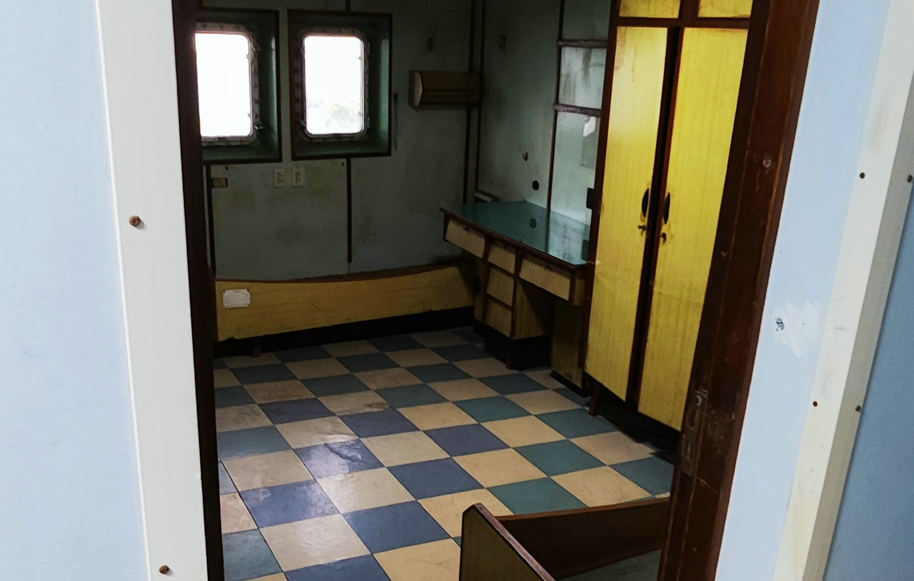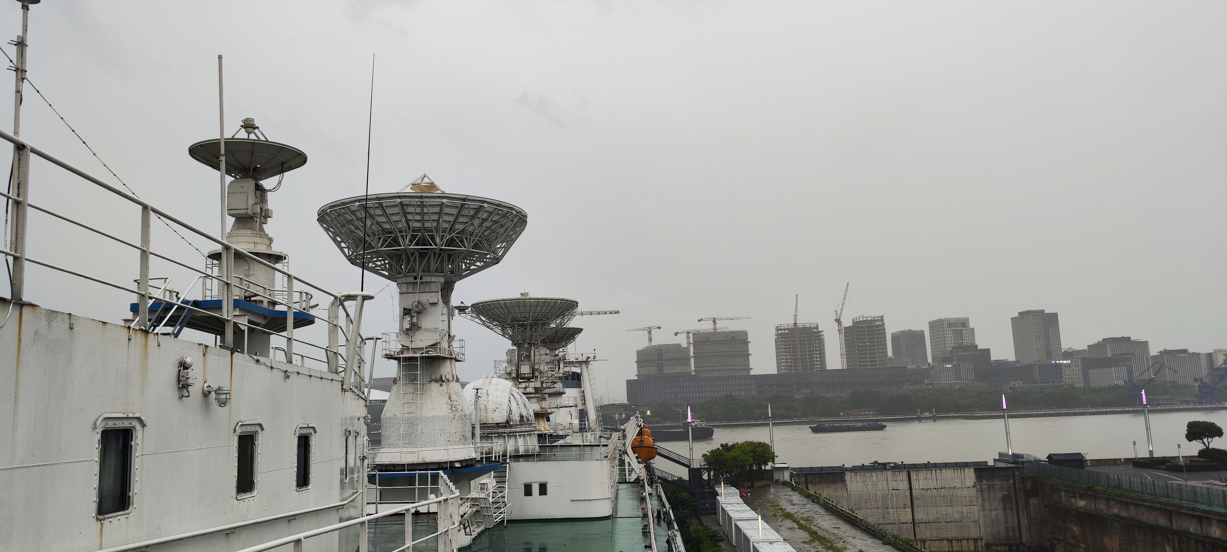 在完成“長城191號”潛艇參觀後,一隊人緊接着前往了旁邊的“遠望一號”航天遠洋測量船進行參觀。雨中的“遠望一號”可謂是非常應景,作為一艘功勳船,雨中的她彷彿在向一隊人訴説着崢嶸歲月中船員和科學家們平凡而不平庸的船上生活。