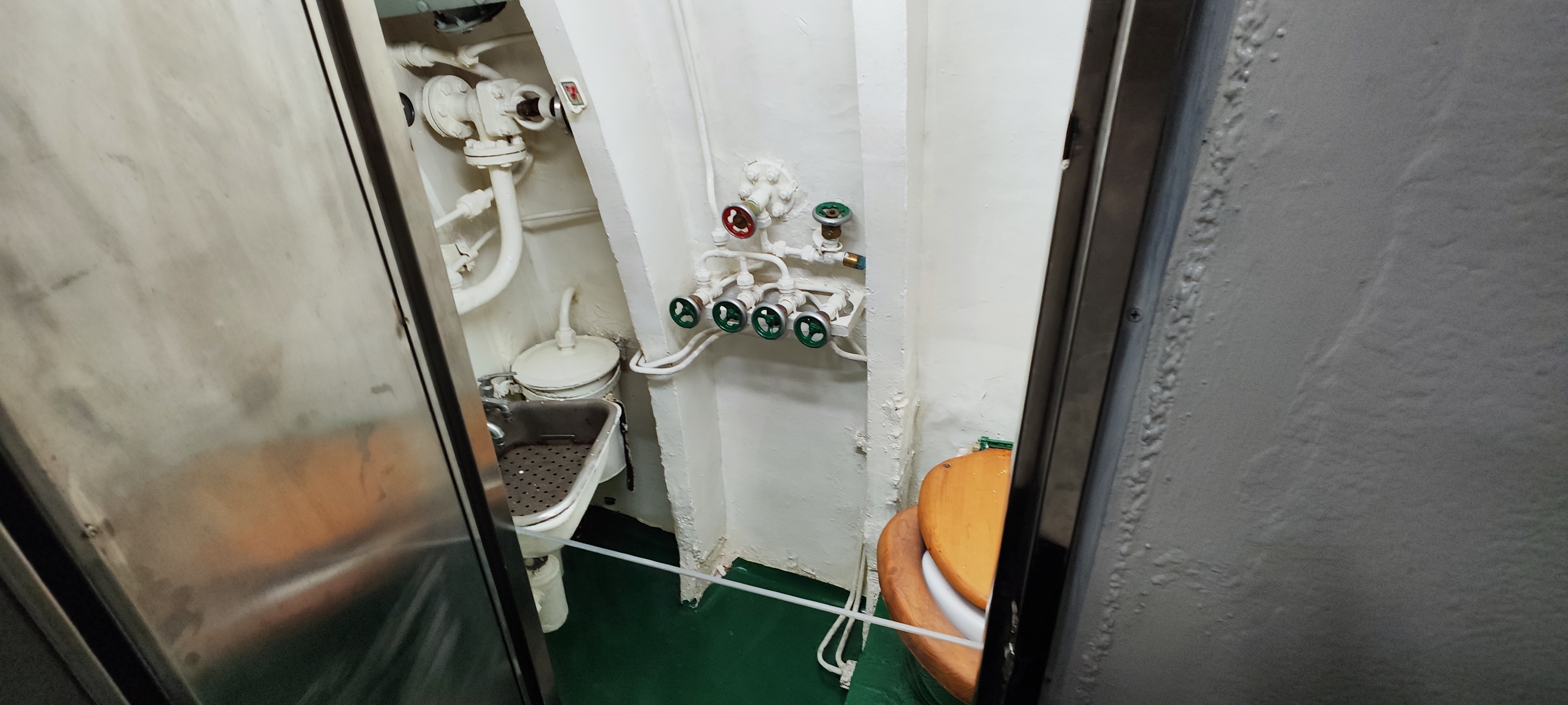 雖然是一艘上世紀建造的已退役潛艇,但在繞她一週參觀時,還是會覺得在她面前,人類的身材是渺小的。與相對高大的艇外相反,艇內的空間只能稱為“寸土寸金”,艇員在其中工作是真的很不容易。(ps:因為兩位“走線”解説員的優秀髮揮,官配解説員姐姐最後放下了解説工作,變成了維持隊伍秩序的工作人員。哈哈哈~)