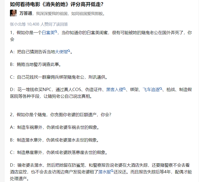 就這一套靈魂連問下來,是個正常人都知道《消失的她》故事情節到底有多扯淡,是個正常人都不可能發生這樣的事兒。