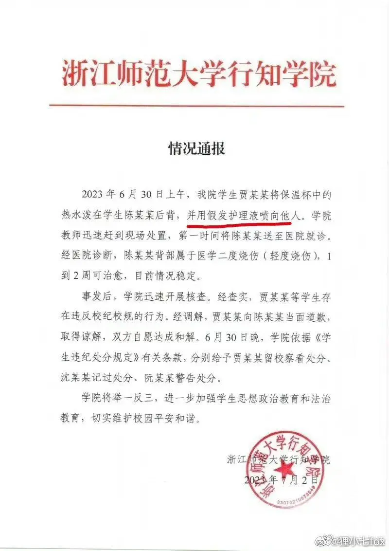 像最新的浙江師範大學行知學院某女生潑熱水男同學事件