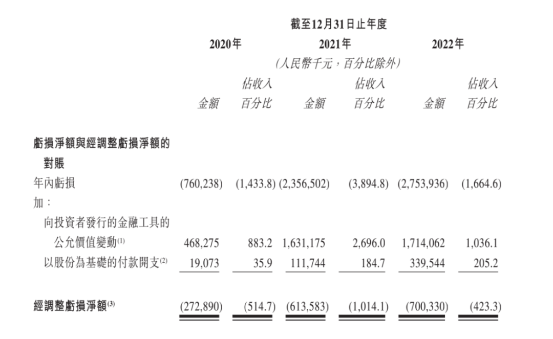 在剔除向投資者發行的金融工具公允價值變動、以股份為基礎的付款之後,黑芝麻智能經調整淨虧損分別為2.63億元、6.74億元和7.00億元,合計16.37億元。