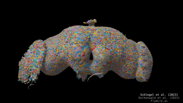 其中包含來自雌性黑腹果蠅大腦的130000個帶註釋的神經元,以及它們之間的數千萬個化學突觸。