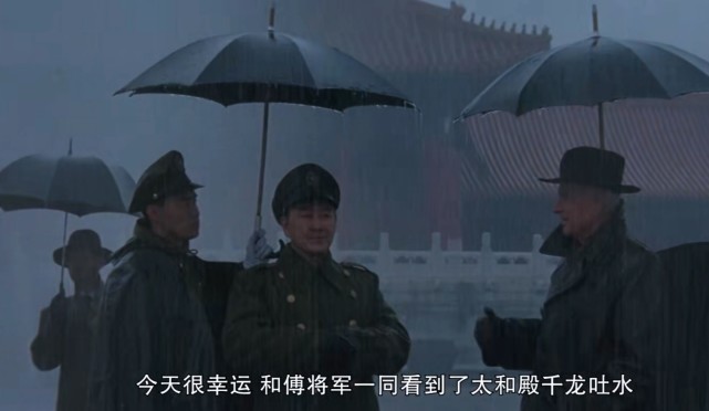 《平津戰役》整部影片的中心,其實是講國共雙方爭奪一個人,此人就是駐守北平,時任華南巢總司令的傅作義其實不光是國共在爭奪他,以前一直在幕後的美國人現在也直接站出來了。電影一開篇,司徒雷登和傅作義在暴雨中游覽故宮,看到太和殿千龍吐水的盛景(飾演傅作義的李定保,後來最有名的角色是《雍正王朝》裏的鄔先生)。司徒雷登感嘆了一番帝王的無上權威之後説:“傅將軍,我再一次提醒你考慮,把華北國軍撤退到山東沿海,留駐青島的美國西太平洋艦隊會和將軍直接聯繫的。”傅作義還是不肯明確表態:“大使先生,我已經説明了,我只是一個地方長官,我不能不聽命於南京啊!”司徒雷登:“哈哈哈哈,我的老朋友,我原以為你不善於外交辭令,看來我錯了,”