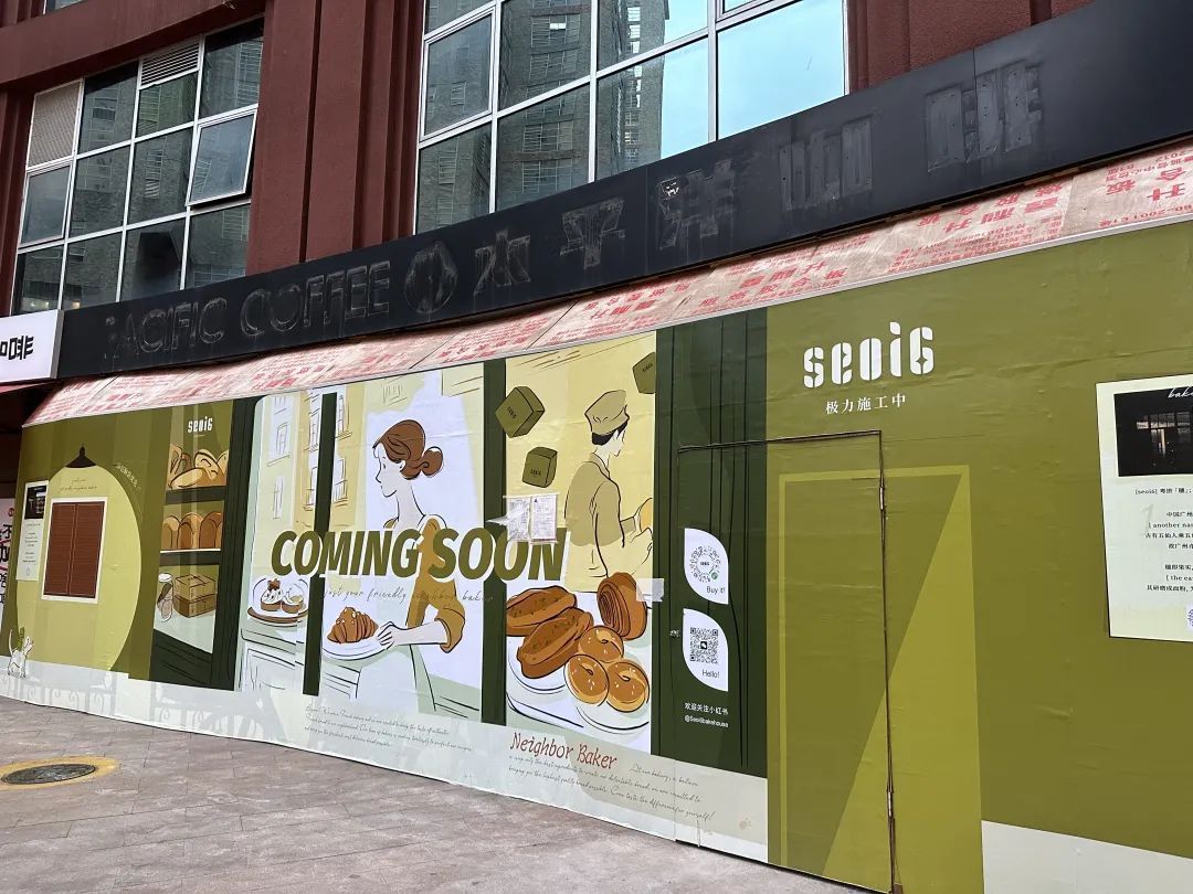 而原南天廣場店的商鋪已經有了“新主人”——一家名為“seoi6”的烘焙店建起了圍擋。