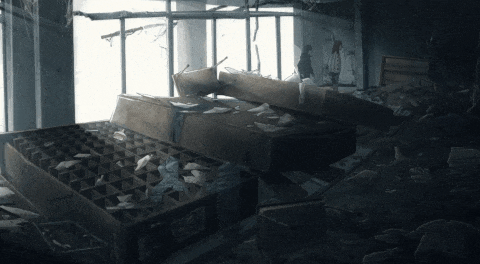 《天國大魔境》第十話蜘蛛怪物對房間進行冷凍攻擊的場景,忽然增厚粗糙不平的筆觸彷彿表現了與空氣接觸的表層結霜的粗粒感[Gif 11],而一當陽光再次照射在斬子身上,線條忽然變細,進而消失不見,遠景沒有線條的色塊[Gif 11]在陽光下模模糊糊的樣子在物質的層面上讓我們體會到了消融的感覺。這種線的變貌,以及動搖我們感性的二維紙面的搖鏡、定格的靜止畫、一瞬的色彩運動,正是五十嵐海擁有但其餘人匱乏的,可以稱之為纖細的大膽,或者説大膽的纖細的東西。